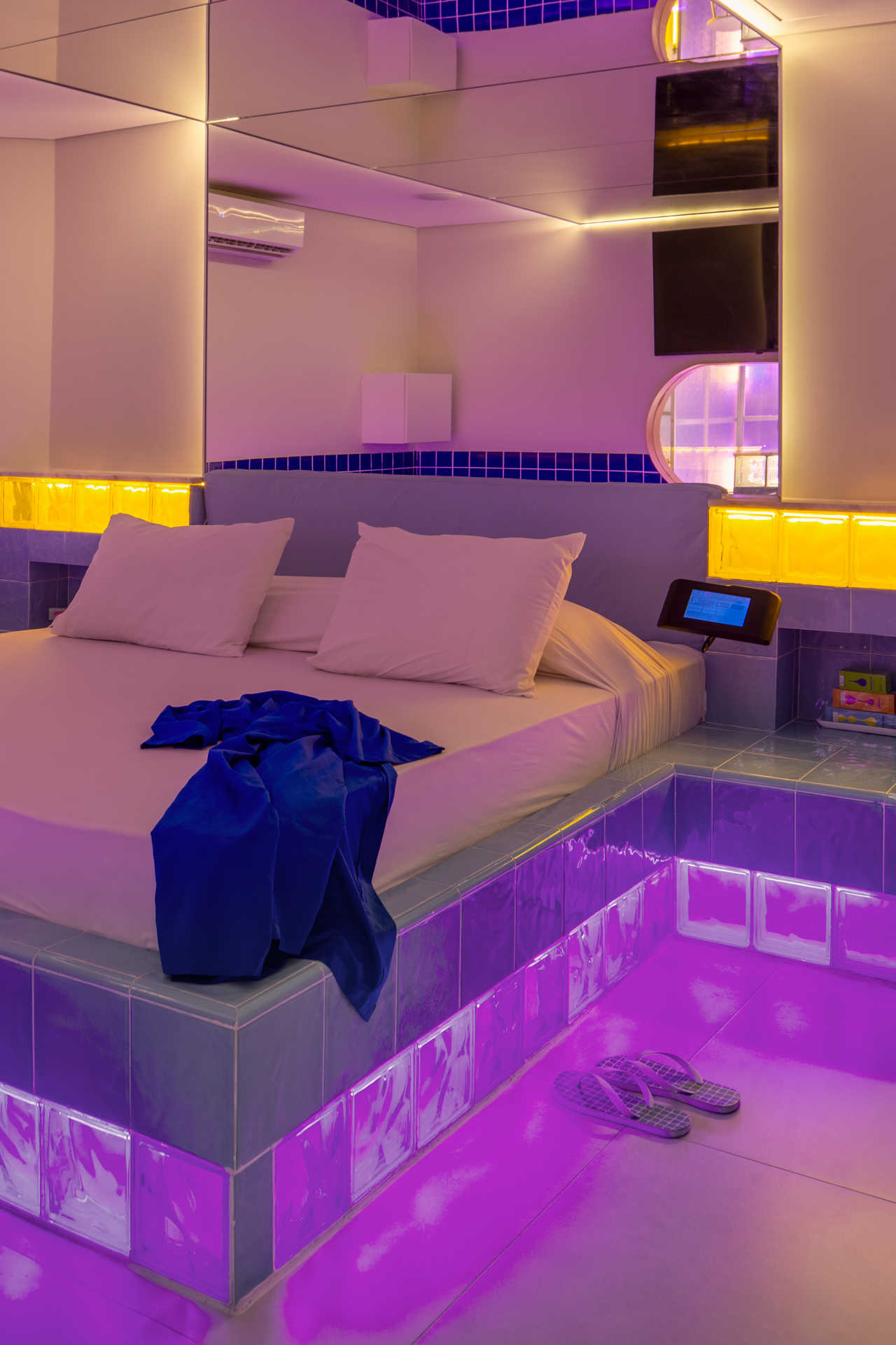 Suíte Nuu.Hit: 2 Smart TV's 50", 3 ares-condicionados split, bar, box interativo, canais eróticos, decoração diferenciada, ducha tripla, duplex, frigobares, hidro grande, iluminação especial, internet Wi-Fi, lounge, música ambiente, secador de cabelo, garagem coletiva.