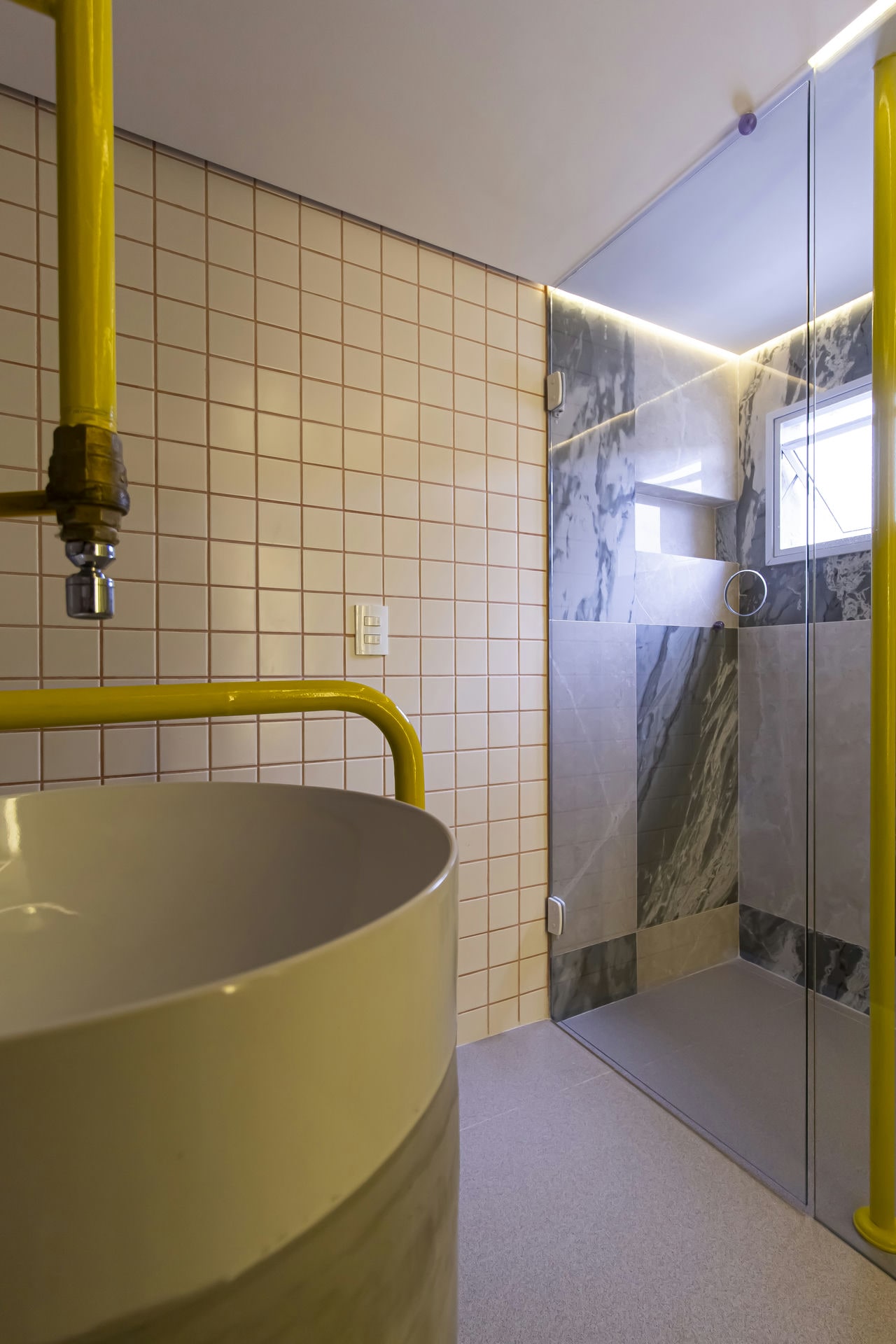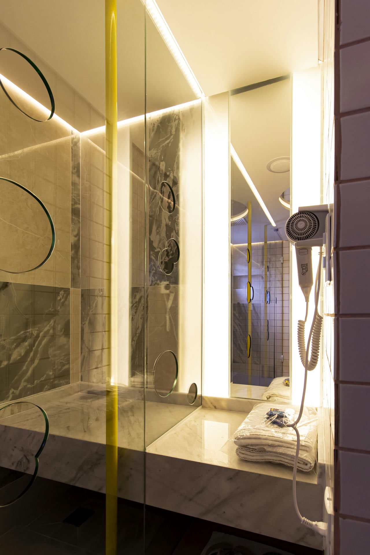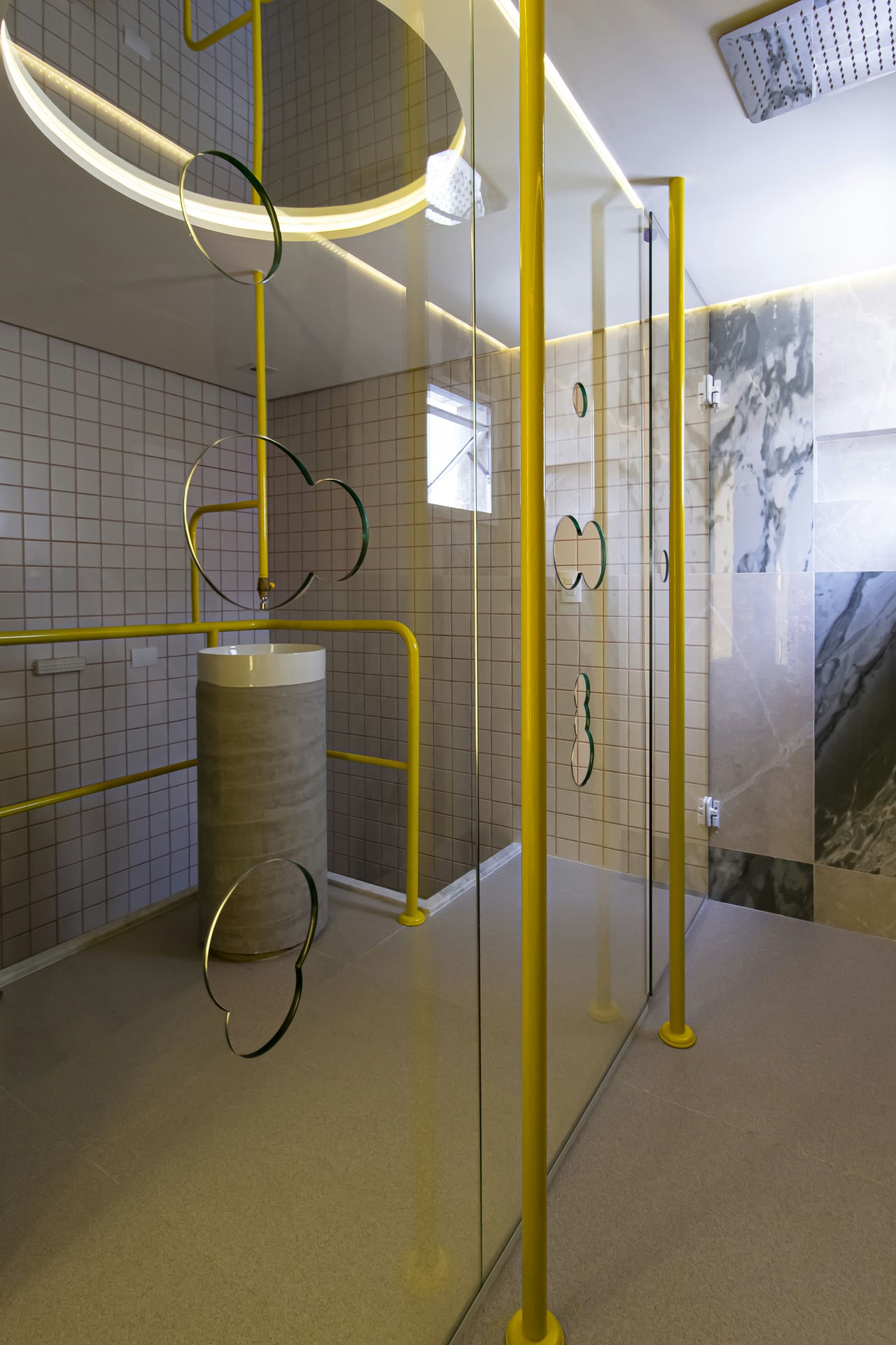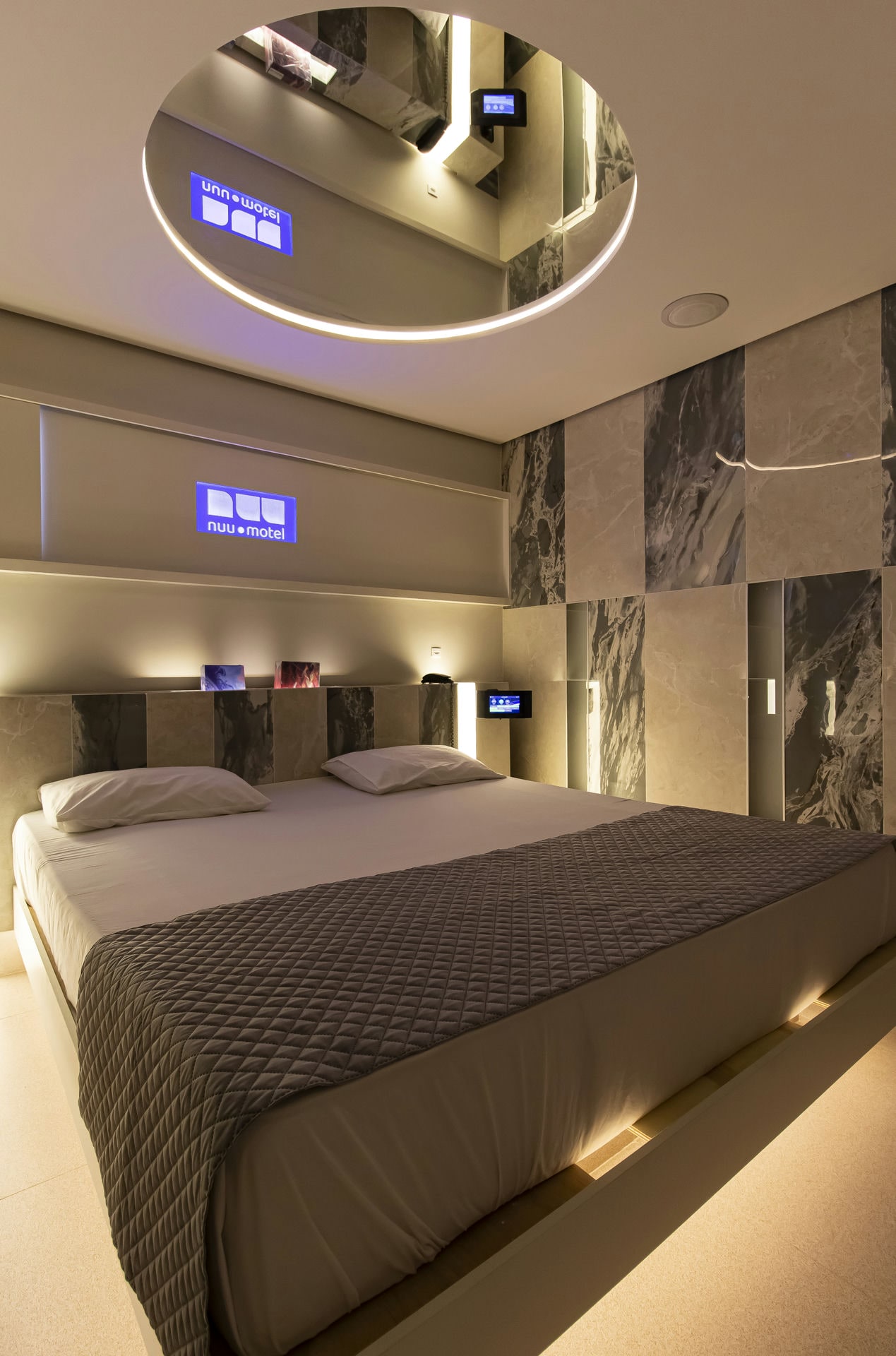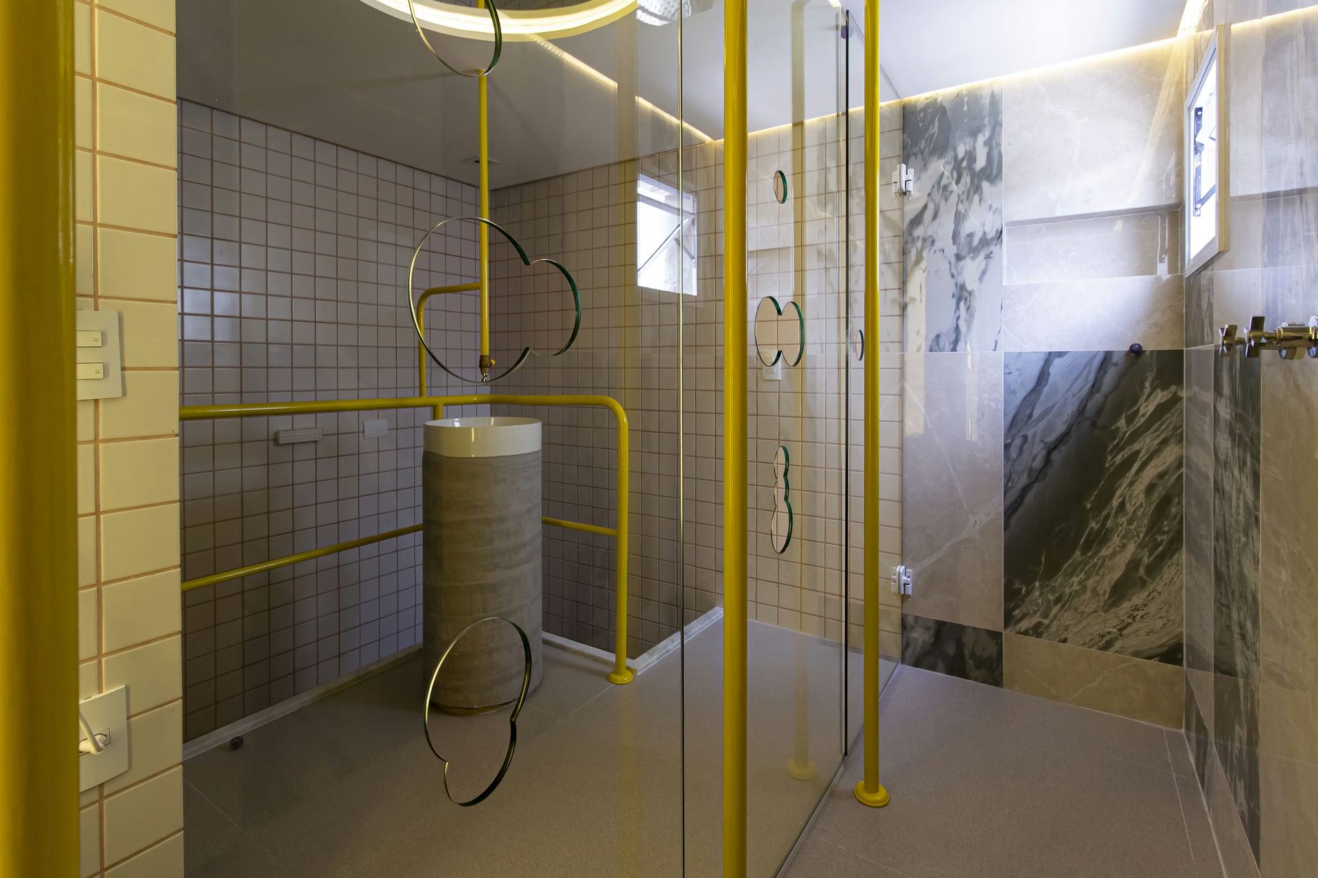 A suíte nuu.box tem esse nome não à toa: buscamos levar a sério a experiência dentro do chuveiro e possibilitar interações inusitadas. Se permitam descobrir os buracos junto dos seus corpos — aqui a gente quis subverter a ideia dos famosos “glory holes”, permitindo que outras partes dos corpos fossem colocadas em evidência: seios, nádegas, bocas, orelhas, pés. Um de frente para outro, separados por um vidro, um banco que sugere explorar ainda outras posições — tudo aqui serve de estímulo para vocês se aproveitarem.